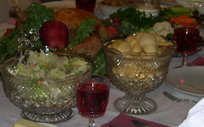 We continue to serve the canned cranberry jelly. It's somewhat of a silly little tradition here... we know the table is complete if we have that can shaped jelly in a pretty dish. And of course, we don't dare stir it. Kevin likes to see the can shape.